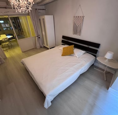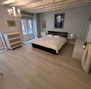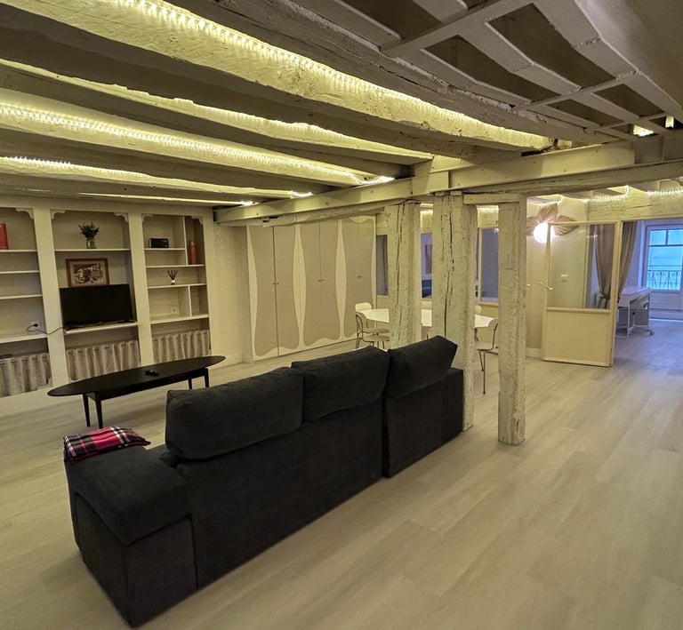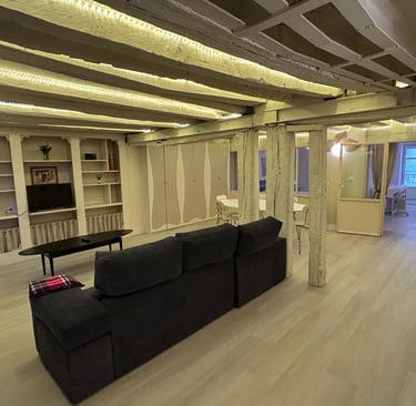El apartamento está ubicado en el corazón del Casco Viejo de Bilbao, justo al lado del emblemático Mercado de la Ribera y con una estación de tranvía a la salida del edificio, lo que facilita la movilidad por toda la ciudad. El apartamento es amplio, muy bien situado y cuenta con dos habitaciones, cada una con una cama matrimonial grande, lo que garantiza comodidad para sus huéspedes.